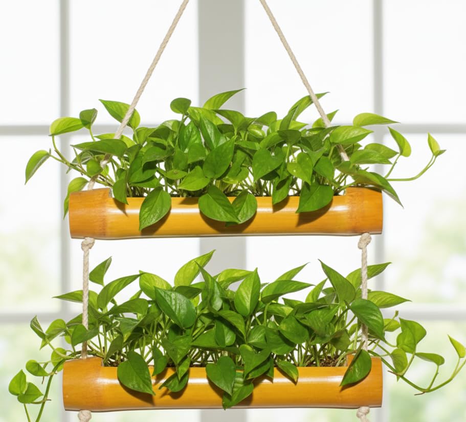 Wall Hanging pots for Plants, Natural Bamboo Planter. Hanging pots for Plants Indoor, Hanging pots for Plant (2 Step Planter, Medium)