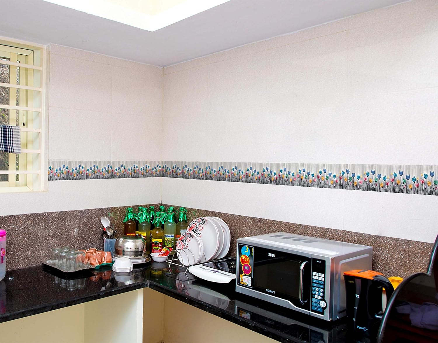 WallDesign‘s high quality vinyl self adhesive wall border sticker product. Ideal to decorate on your kitchen, living area, bathrooms or anywhere in your house & make it more attractive. Just peel & stick to apply.