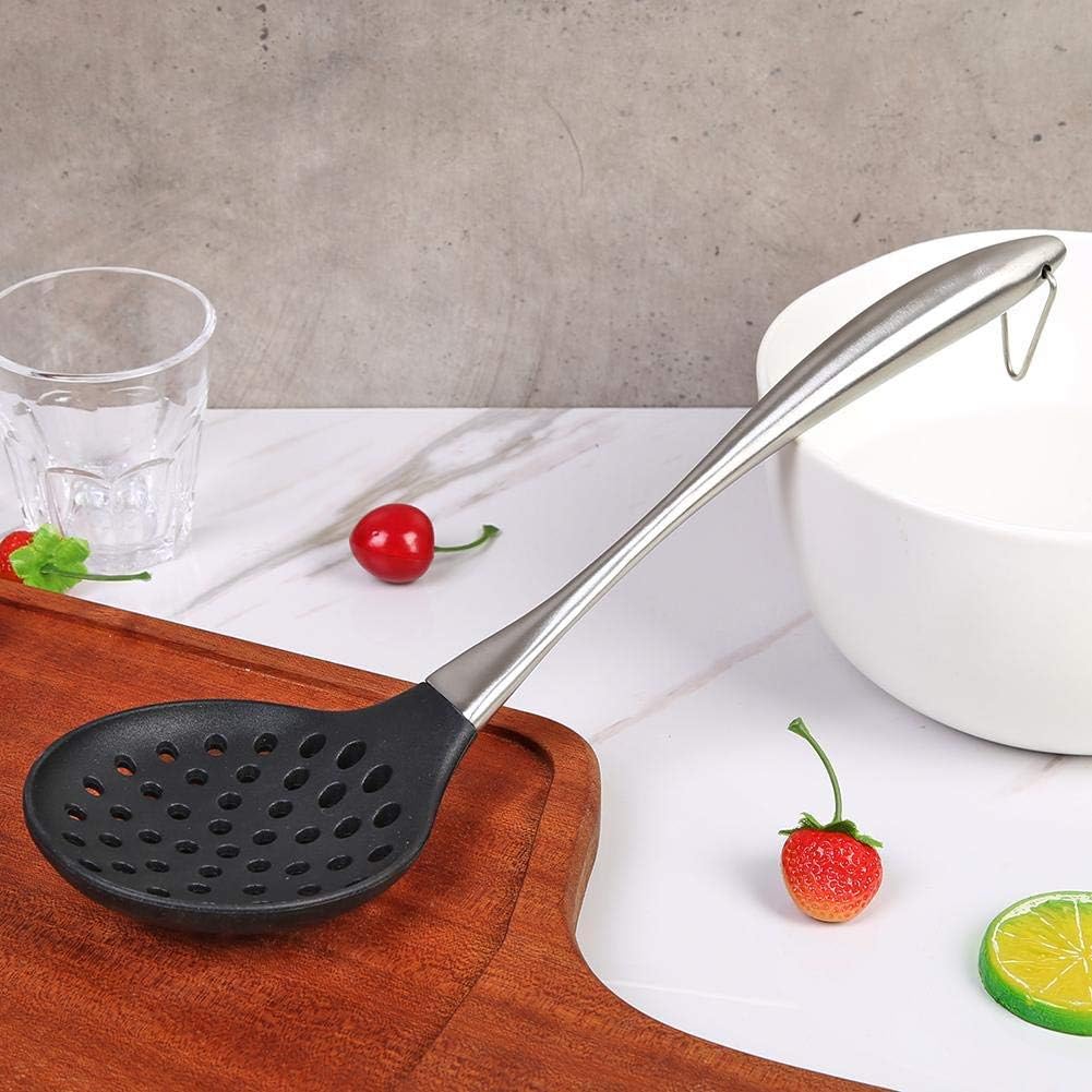 Food Grade Materials: The head of this slotted spoon was made with 100% BPA free silicone. And the handle was made of high quality stainless steel.