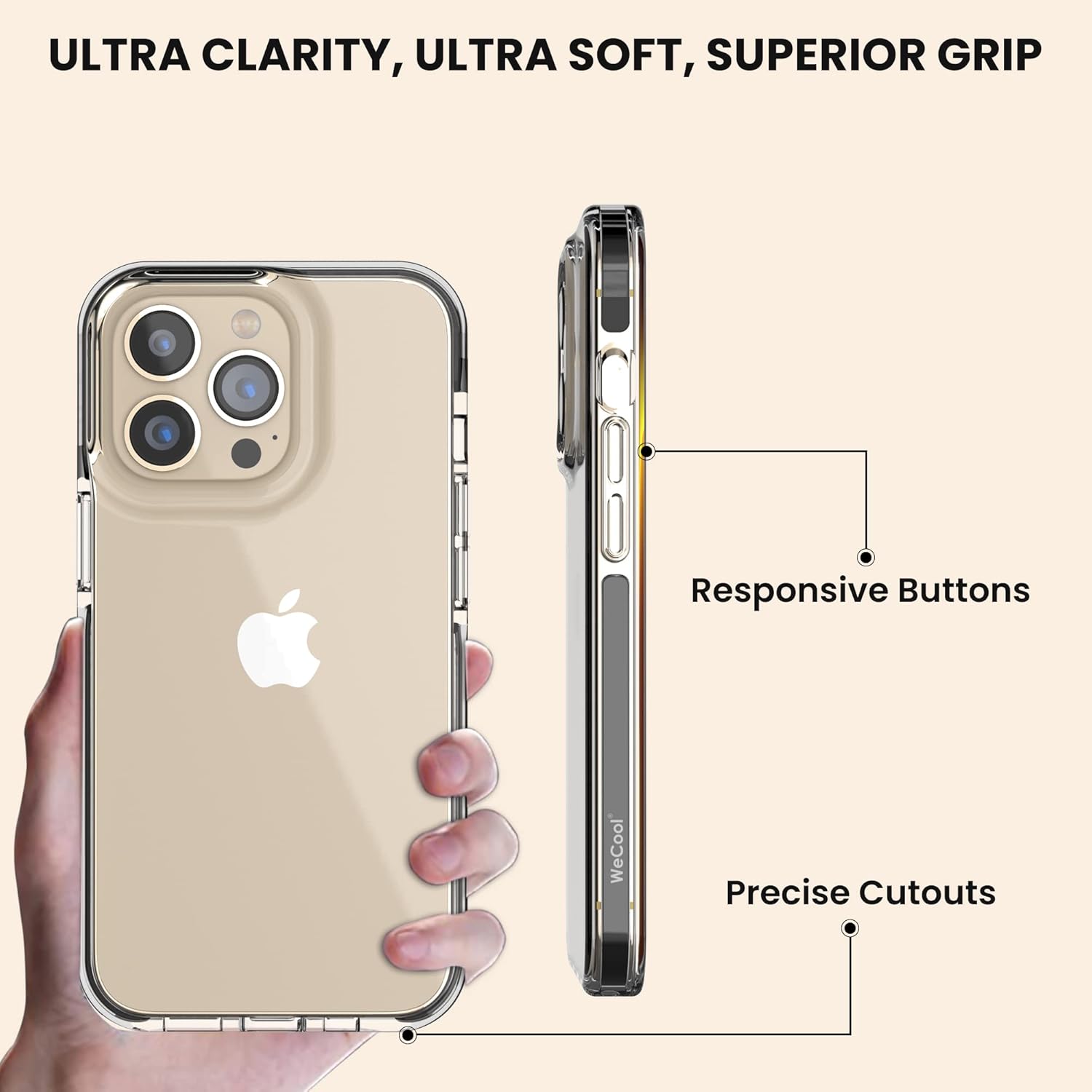 WeCool Genuine Premium Case Compatible with iPhone 13 Pro is made of German Bayer that provides the highest Clearity for the Back Cover and provides Better Grip.
