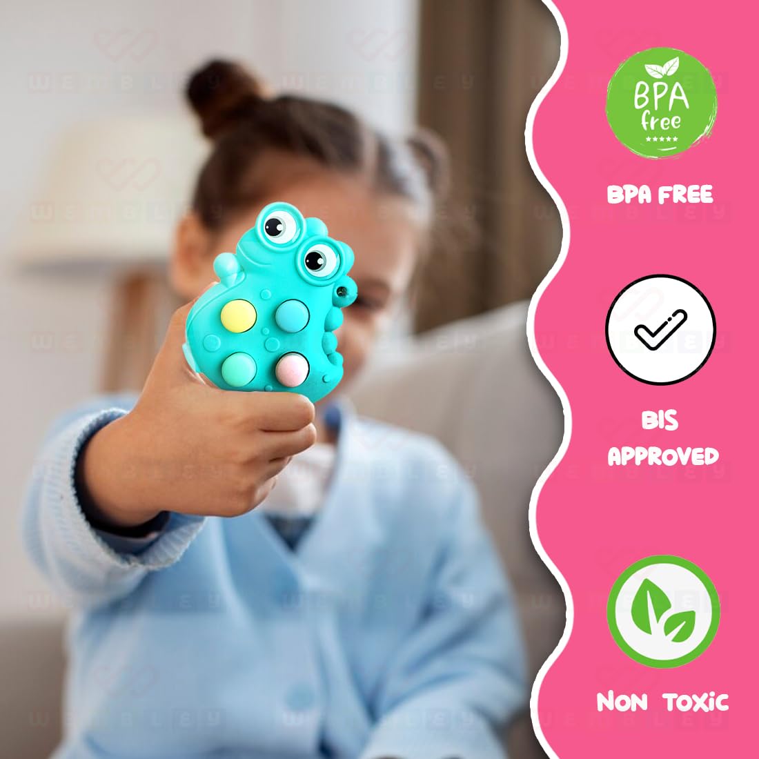 Wembley Fidget Toy| Pop It Out Fidget Toy for Kids| Adorable Satisfying Kids Toy| Non-Toxic Sensory Relaxing Toy for Babies of 9-24 Months (Aqua), Blue