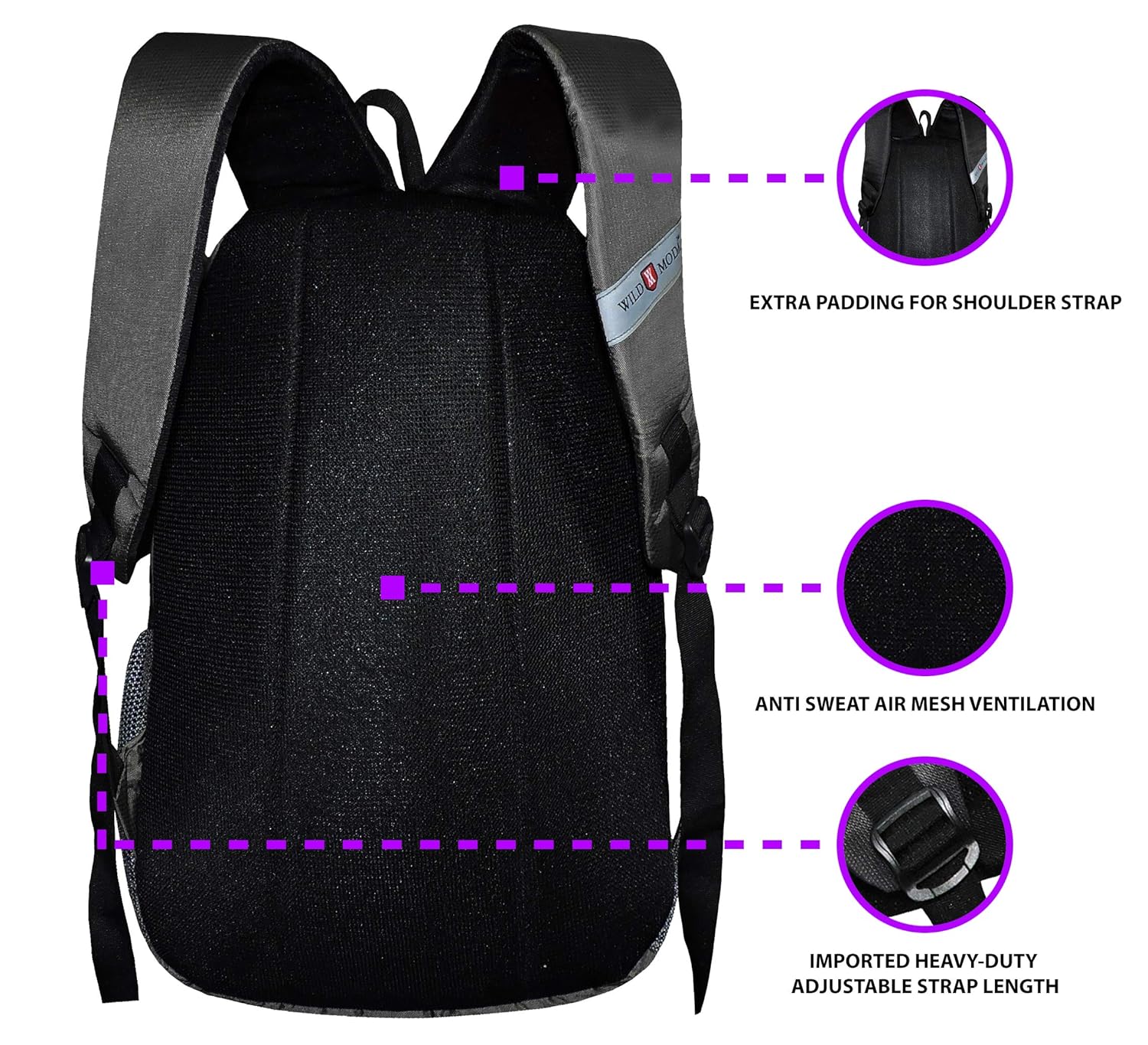 WILDMODA IMPERIAL School & College Laptop Backpack Designed for Outdoor Requirements. It is an Ideal Companion with Copious Space, Sturdy Shoulder Straps & An Evolved Organization. Water resistant liner helps keep your equipment dry, Double zippered main compartment for secure, spacious storage, Adjustable Air Max grips for light shock absorption. Layers on the side store bottles of water and other small items. Backpack is Ideal for College Boys & Girls.