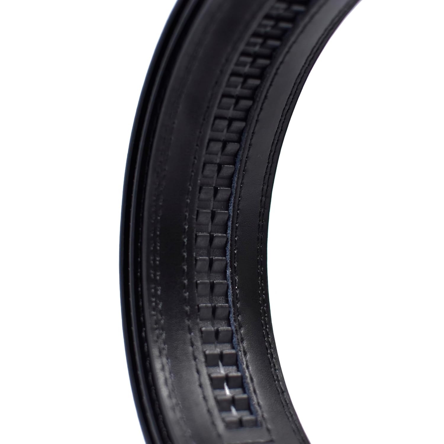 Slide the belt through the buckle — the built-in ratchet system will automatically lock for a secure, custom fit. To release, simply lift the buckle