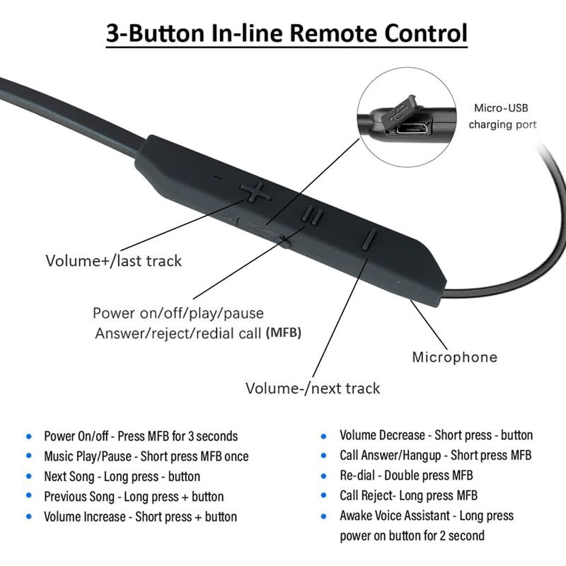 HANDS-FREE CALLING :: It Features a one touch incoming Call receive Functions from up to 30 Feet Distance. The Earphone has Song Selection , Play / Pause Function and Call Receiving Controller.