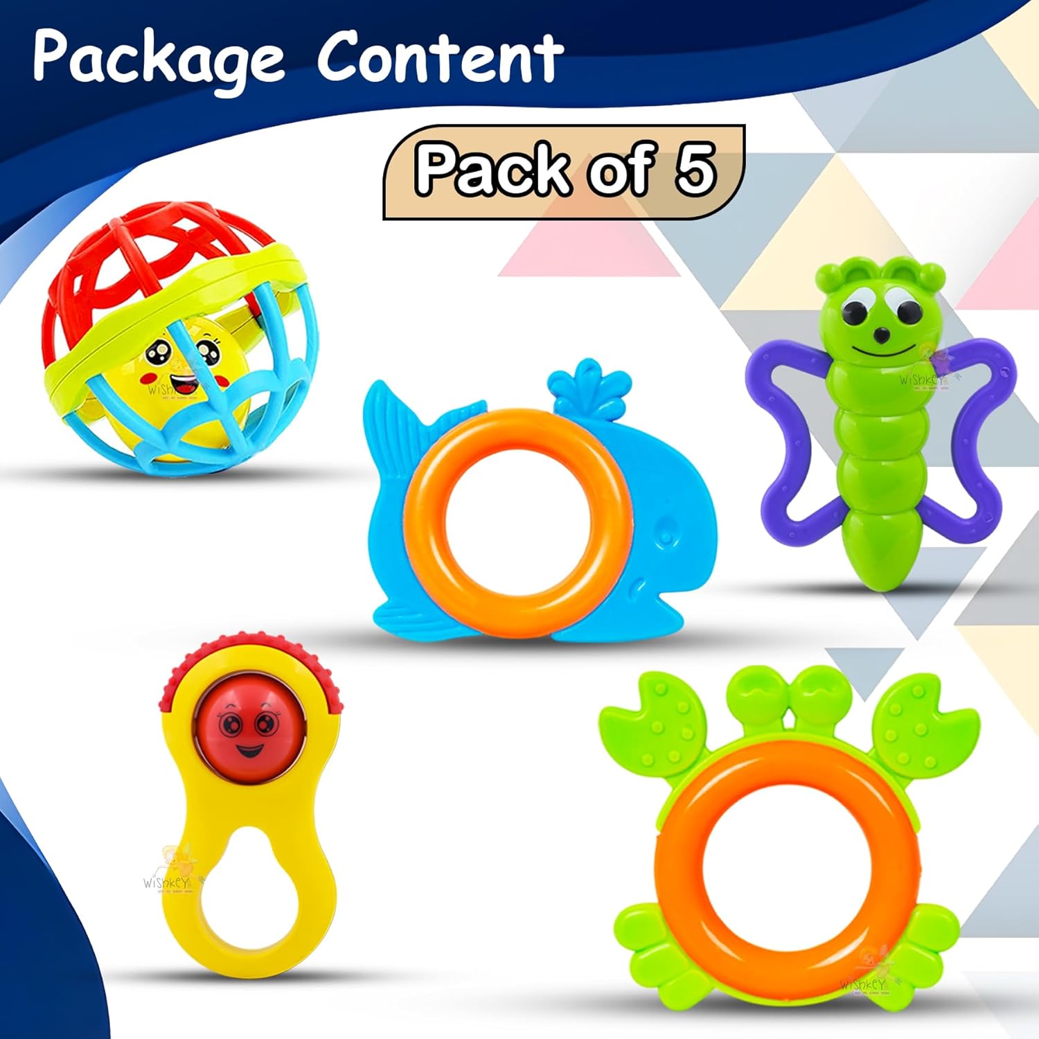Package Contents: This pack includes 5 distinct patterns of rattle toys that will keep your baby entertained for hours. The item is packaged well in a box. These rattle toys include various engaging characters such as teddy bears, telephone, etc. in vibrant colors. This toy is ideal for infants who are just beginning to handle objects.