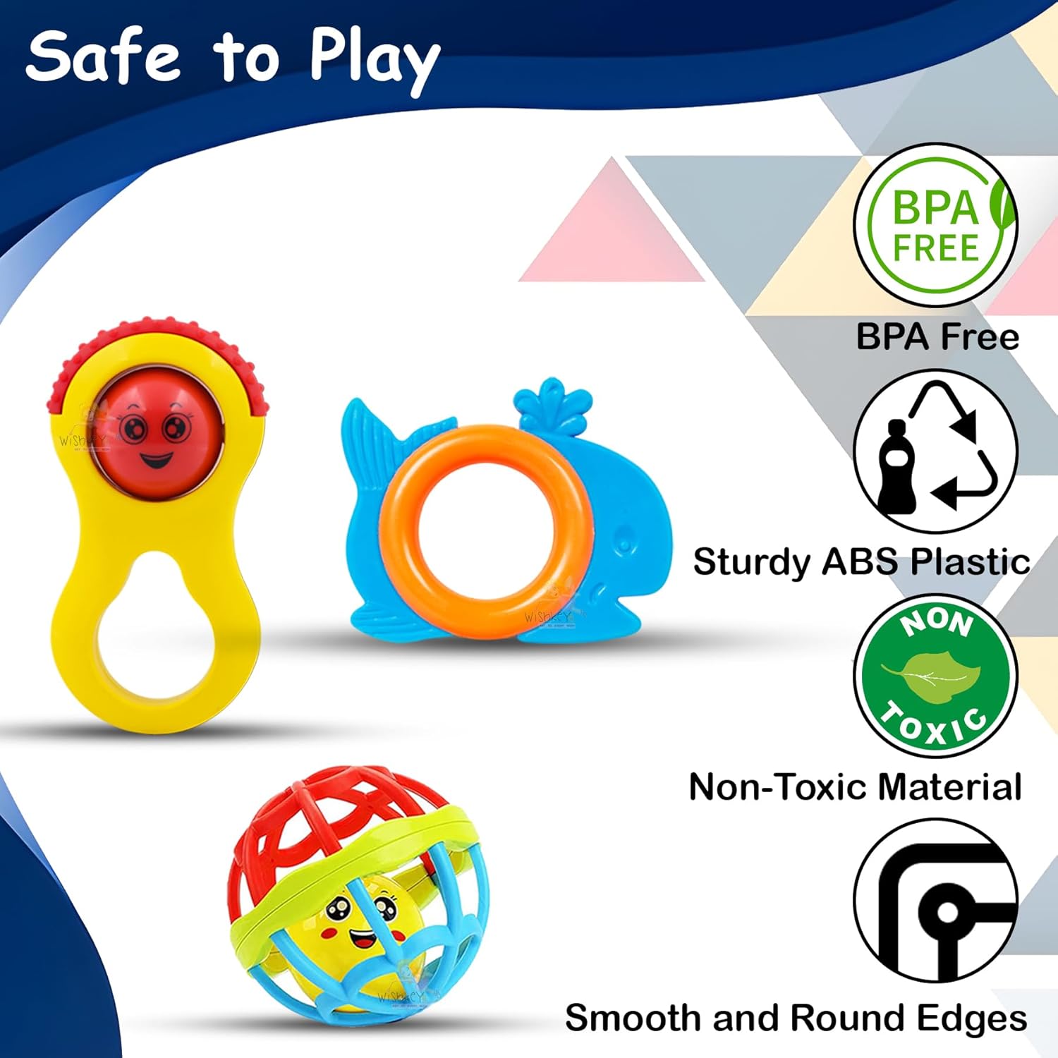 Rattle Toy: These rattle toys provide a peaceful and captivating playtime for your baby. You can simply shake it and the beads present inside the rattles produce a pleasant sound. It calms a restless infant and draws their attention, making them feel happy and relaxed.