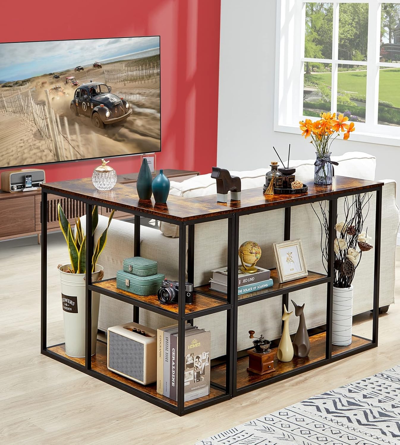 Stable Sofa Table: The console table is made of rustic particle board and black metal frame, shows a charming industrial retro style. The 3-layer wood shelves is more stable than the mesh shelves and easy to clean