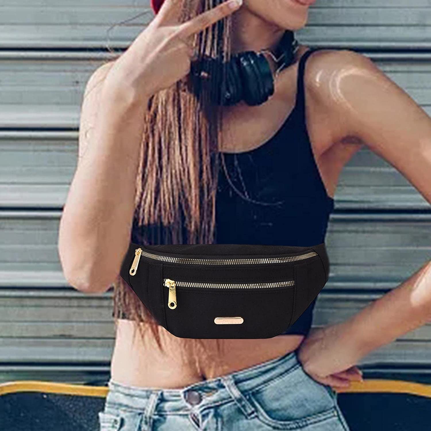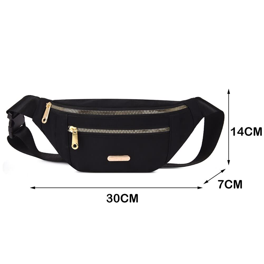 Women Fanny Pack Waist Pack Adjustable Strap Hands Free with 2 Zipper Pockets Bag Waist Bag for Shopping Festival Workout Cycling Sports (Black)