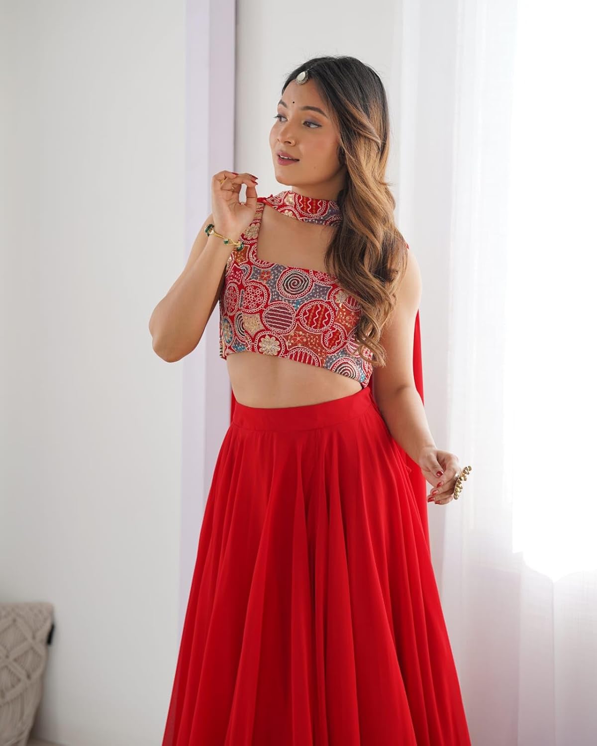 Shop from a wide range of beautifully crafted lehenga cholis. This lehenga is create the combo look of Indian and Western Culture so this is comfortable in every occasion and religion. Our brand believes to provide good quality products to our customer so that the customer will get satisfaction as they want. Our first priority is to provide the best product to our customers. We are making a product with good quality so that we can fulfill our customer needs. The timeless bandhani print chaniya choli showcases intricate ajrakh print and foil lacework, combining elegance and tradition in a stunning ensemble for Navratri !! This lehenga is create the combo look of Indian and Western Culture so this is comfortable in every occasion and religion. Our brand believes to provide good quality products to our customer so that the customer will get satisfaction as they want. Our first priority is to provide the best product to our customers. We are making a product with good quality so that we can fulfill our customer needs.Bridal Lehenga Designer Lehenga Traditional Lehenga Wedding Lehenga choli set