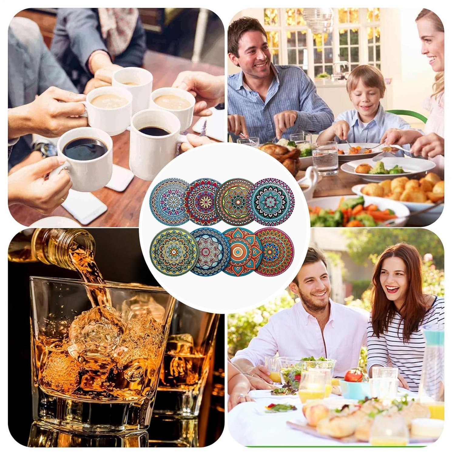 Novelty Pattern: These 10cm round wooden cup coasters for table with colorful mandala patterns are not just beautiful, but also stain resistance, which add a fun art deco to any table. Also a great housewarming gift for new home