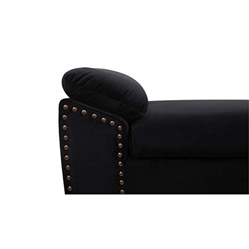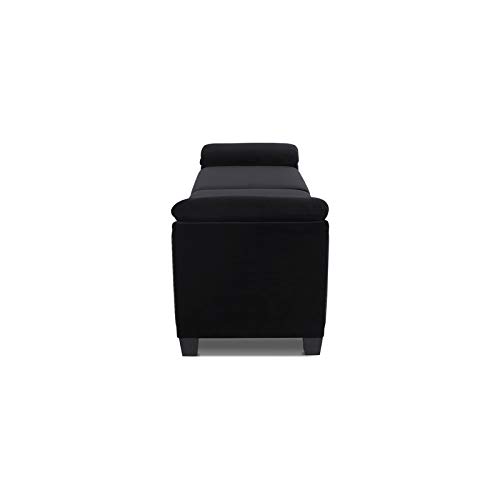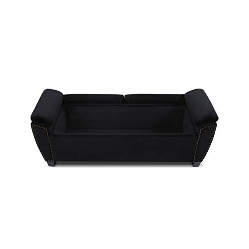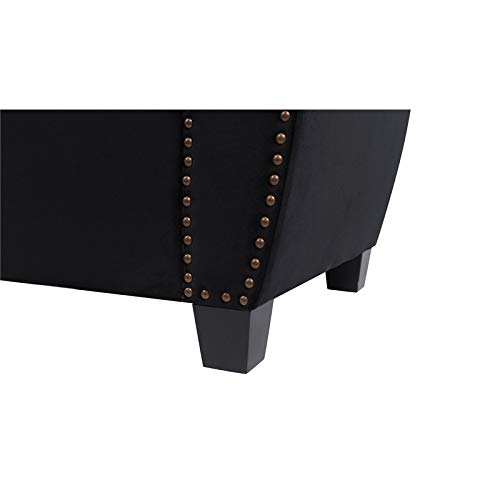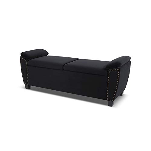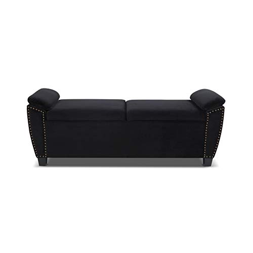 Wood Maker : This Taylor Velvet Storage Bench is a versatile piece that blends with a range of styles and locations in any home. Use it to store accessories in the entryway or mudroom, to hide controllers or remotes in the family room or to stash extra blankets and pillows in the bedroom. It can serve as an ottoman, a coffee table, the end of a bed bench or as a hallway or entryway bench. This eye-catching storage bench has a hinged lid that provides easy access to storage inside, and a solid wood frame and wood legs in a dark black matte finish.