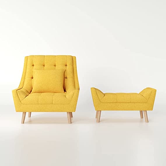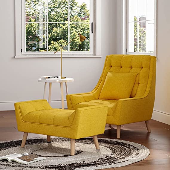 The accent chair is made from soft fabric and strong wood structure, it features a wing back and deep cushioning seating, not easy to deform, providing durability, comfort and full chaise seating.