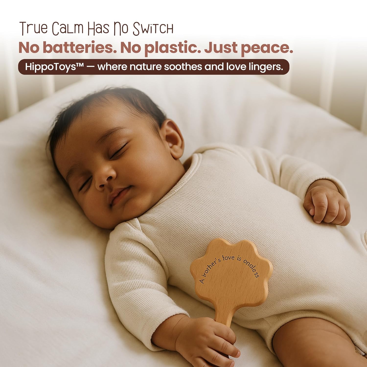 🌿 MADE FROM NATURAL WOOD Crafted from baby-safe, eco-friendly wood. No plastic. No paint. Just pure, organic joy for your baby’s hands and ears.