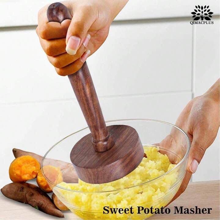 ERGONOMIC DESIGN: Solid wooden construction with comfortable grip handle and wide base for stability while mashing