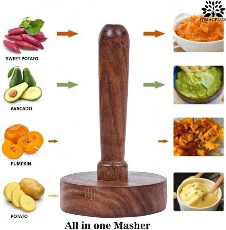 Introducing the versatile All-in-One Wooden Masher, perfect for creating smooth, creamy dishes with minimal effort. This beautifully crafted kitchen tool features a solid wooden construction with a comfortable grip handle and a wide, sturdy base for efficient mashing. Ideal for preparing a variety of foods including sweet potatoes, regular potatoes, pumpkin, and avocados. The ergonomic design allows for smooth, consistent mashing while reducing hand strain during food preparation. The durable wooden construction ensures longevity and provides a traditional, rustic charm to your kitchen tools collection. Whether you’re making mashed potatoes for dinner or preparing fresh avocado spread, this masher delivers consistent results every time. The wide base provides excellent coverage and stability, while the lengthy handle offers good leverage for thorough mashing. A practical addition to any kitchen, this masher combines functionality with classic design.