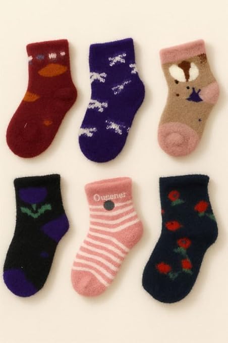 Keep your little one’s feet snug and warm this winter with Khillayox Woolen Fuzzy Socks. Made from a premium wool blend, these socks are super soft, stretchy, and comfortable — perfect for everyday wear during chilly days. The thick thermal material ensures excellent insulation, keeping feet warm without feeling heavy or itchy. Each set includes 4 adorable pairs in assorted colors and patterns that your kids will love to wear indoors or outdoors. Designed for boys and girls, these socks feature a non-slip grip pattern (optional if applicable) for better safety on smooth floors. Whether your child is relaxing at home, going to school, or playing outside, these fuzzy socks offer the perfect combination of warmth, comfort, and style all winter long.