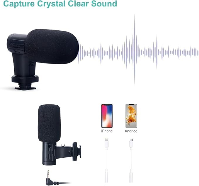 The microphone features cardioid wide pickup range and powerful noise canceling technology, plus mic capsule for recording.Ensure crystal-clear audio with our microphone. Designed to reduce background noise, it’s ideal for interviews, on-the-go vlogging, and capturing natural soundscapes.Unfold and adjust the height of the foldable tripod stand for the perfect shot. Securely attach the phone clamp to the tripod using the cold shoe mount.360° universal adjustment, a variety of vertical shooting methods can be switched at will.The ingenuity of the flexible tripod design allows you to flex and bend the tripod to form into your desired angles , and will hold steady to capture the shot in most any environment .Phone tripod works great for recording and documenting whileadventuring and for sports and on-the-go.