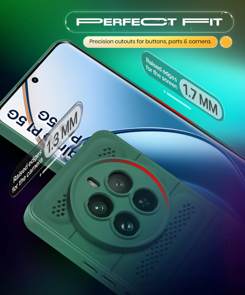 WOW IMAGINE Ultimate Silicone Back Cover Case for Realme Narzo 70 | Realme Narzo 70 Pro | 12 Plus | P1 5G | Heat Dissipation Soft TPU | 360° Camera Protection | Breathable Cooling Holes – Forest Green