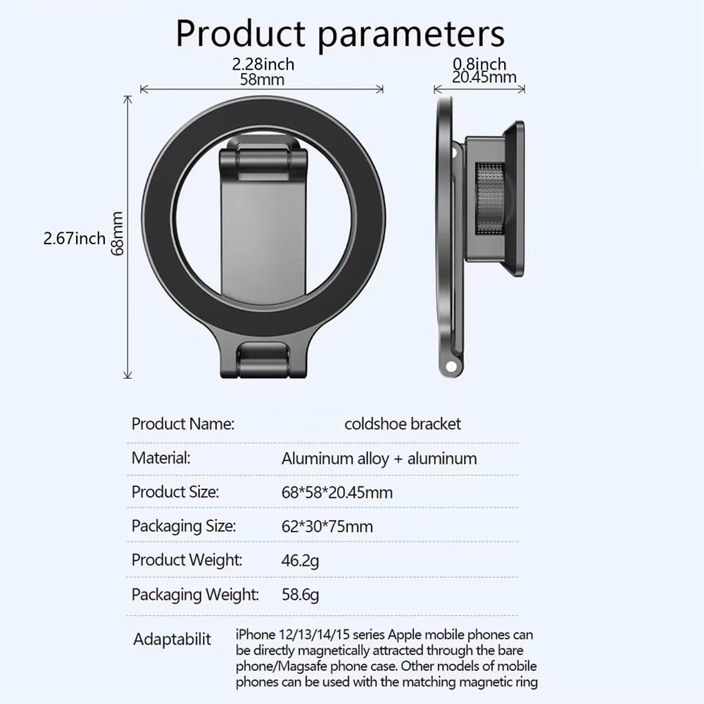 Wide Smartphone Compatibility: Designed for i-Phone 12/13/14/15/16/17 series with MagSafe, also works with other mobile phones using the included magnetic ring, suitable for creators, vloggers, and travellers.