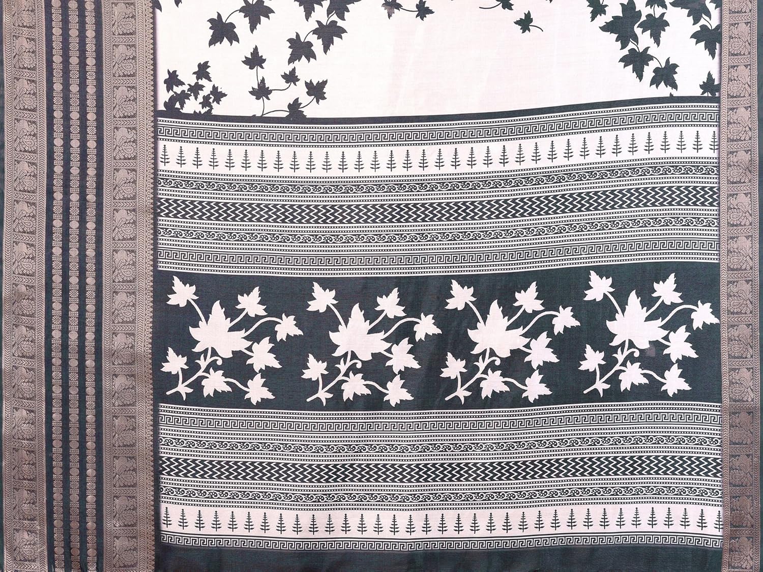 Generic Name : Floral Printed White Dola Silk Jacquard Saree With Unstitched Blouse Material For Women