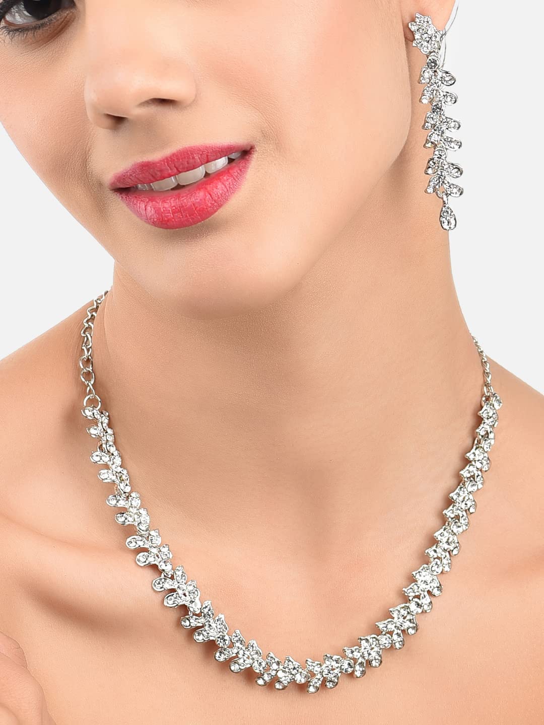 Stunning Necklace Set With Complimenting Dangler Earrings Embellished With Sparkling White Austrian Diamond.Add This Stunner in Your Festive Look to be Dazzled.