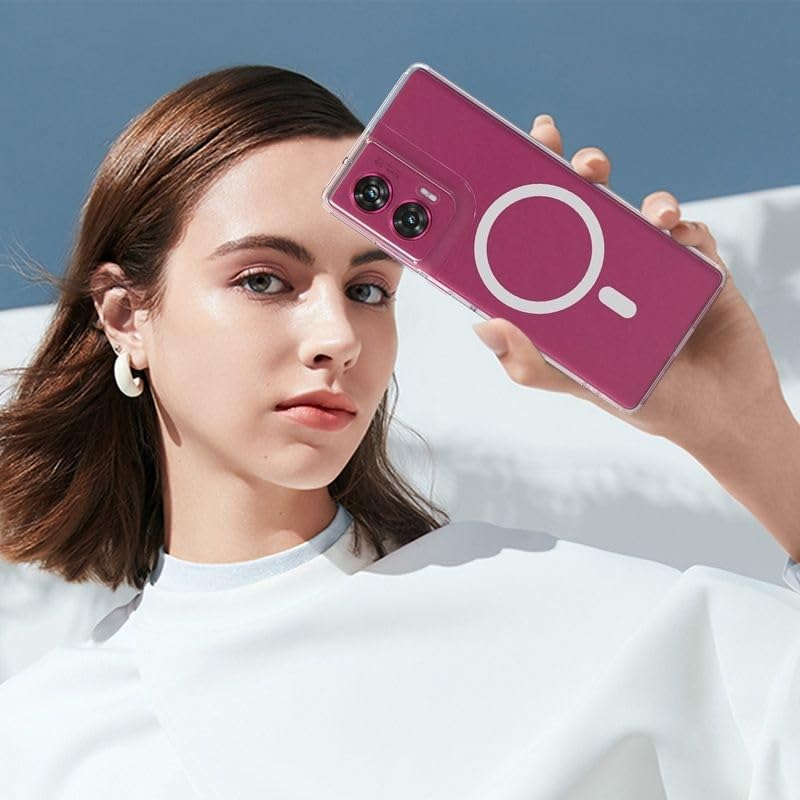 ZELFO Back Cover Case with Magnetic Lock Shockproof Bumper Protection Case for Motorola Moto Edge 50 Fusion (5G) (Transparent)